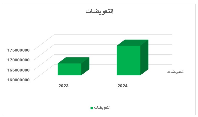 بلغت جملة التعويضات المسددة لعملاء الشركة حتى 2024/12/31 مبلغ 174.80 مليون جنيه مصرى مقابل مبلغ 165.94 مليون جنيه مصرى بالعام السابق.